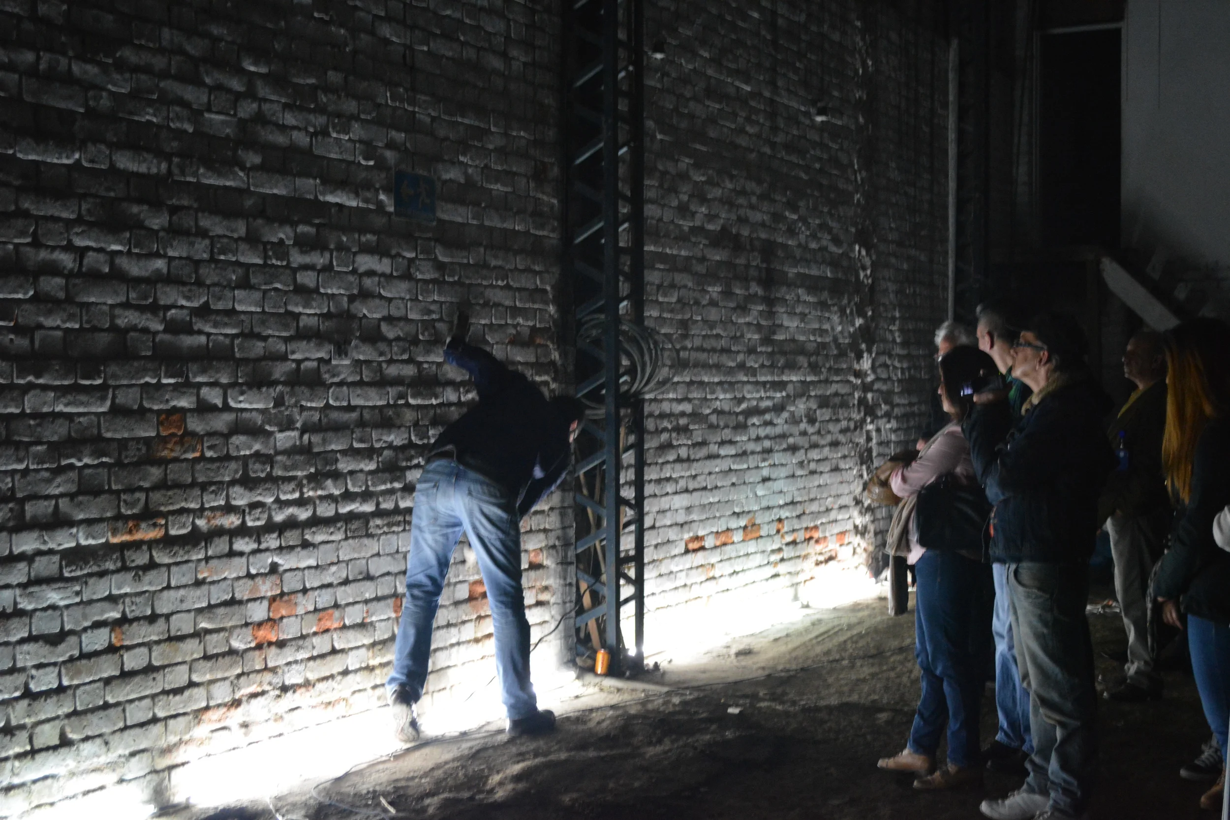 The theatrical installation is made within a warehouse beside the cemetery (bought by the Plan Centro for the future recovery of the zone) with the support of audiovisual documents and (non-actor) performers from the community of Barrio Santa Fe and workers of the graveyard.